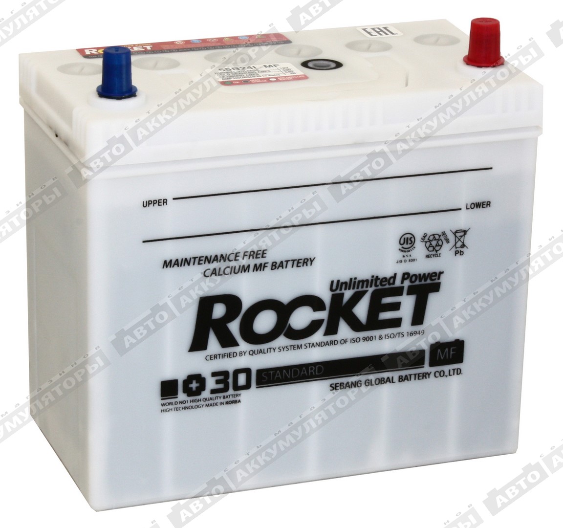 Новый аккумулятор ROCKET заправлен кислотным раствором, полностью заряжен и установлен в автомобиле для немедленного использования.