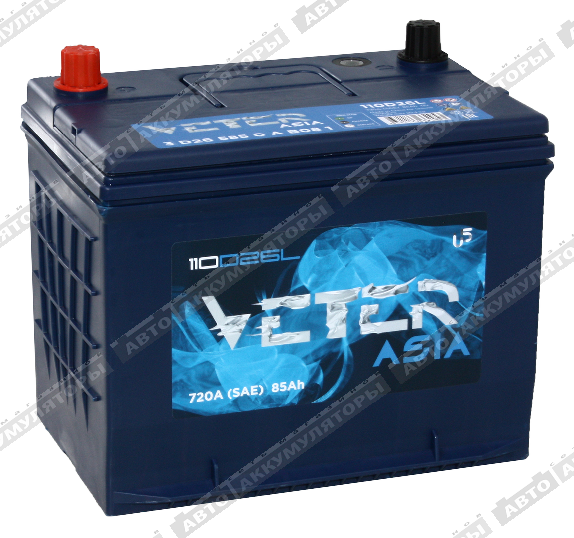 Легковой аккумулятор Veter NEW ASIA 6СТ-85.0 VL (110D26FL)