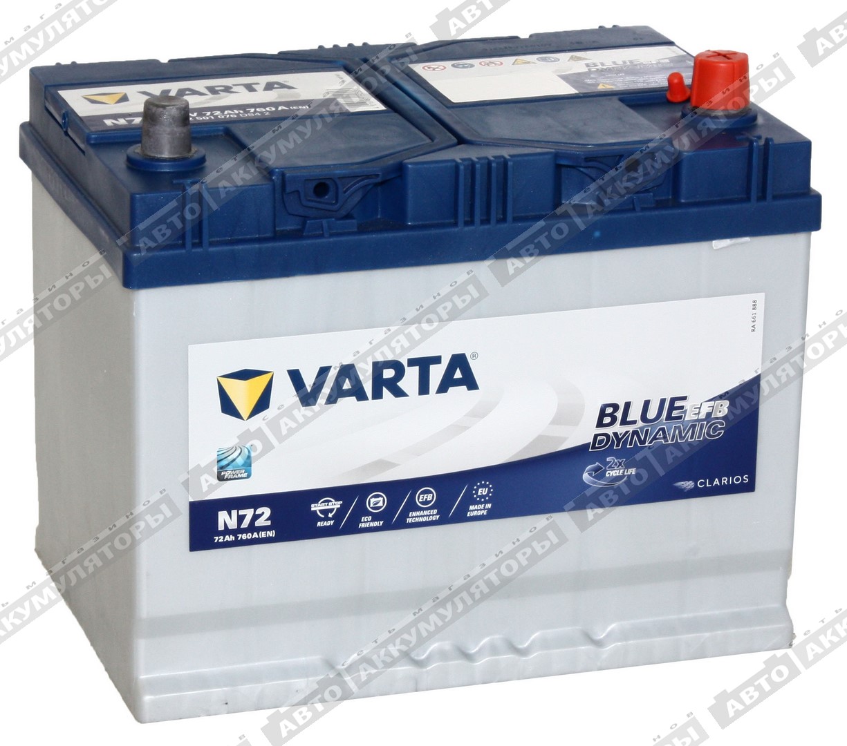 Легковой аккумулятор Varta Blue Dynamic EFB 572 501 076 (N72)