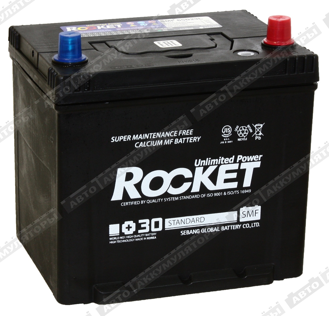 Новый аккумулятор ROCKET заправлен кислотным раствором, полностью заряжен и установлен в автомобиле для немедленного использования.