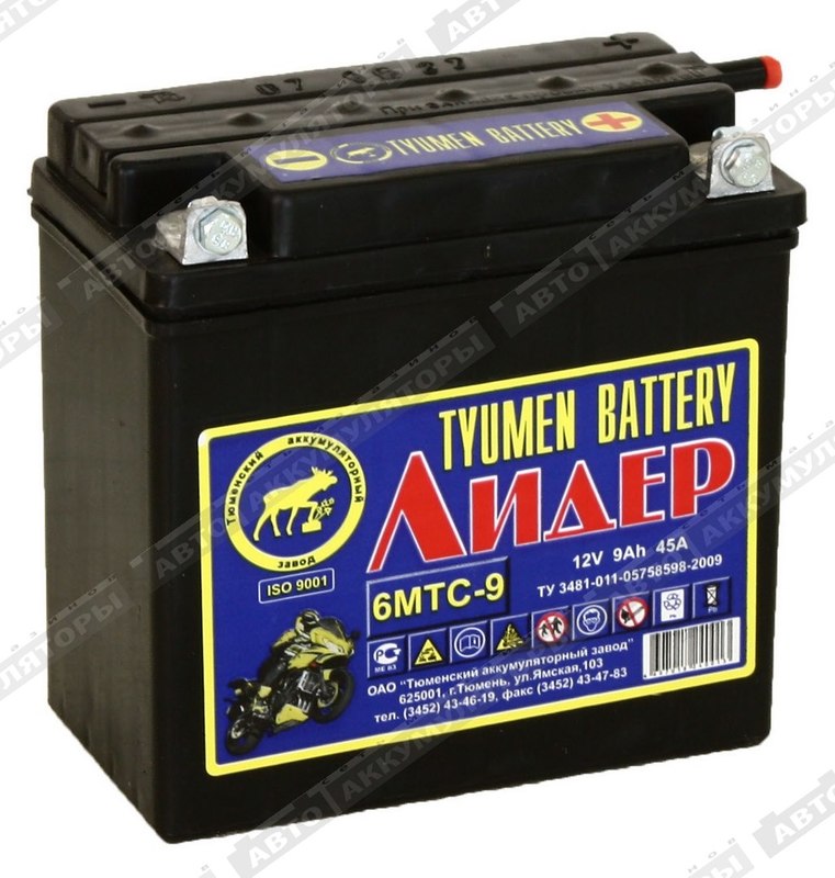Все батареи Tyumen Battery 6МТС-9 Лидер (клеммы под болт) 12В 9Ач приспособлены к российскому климату.