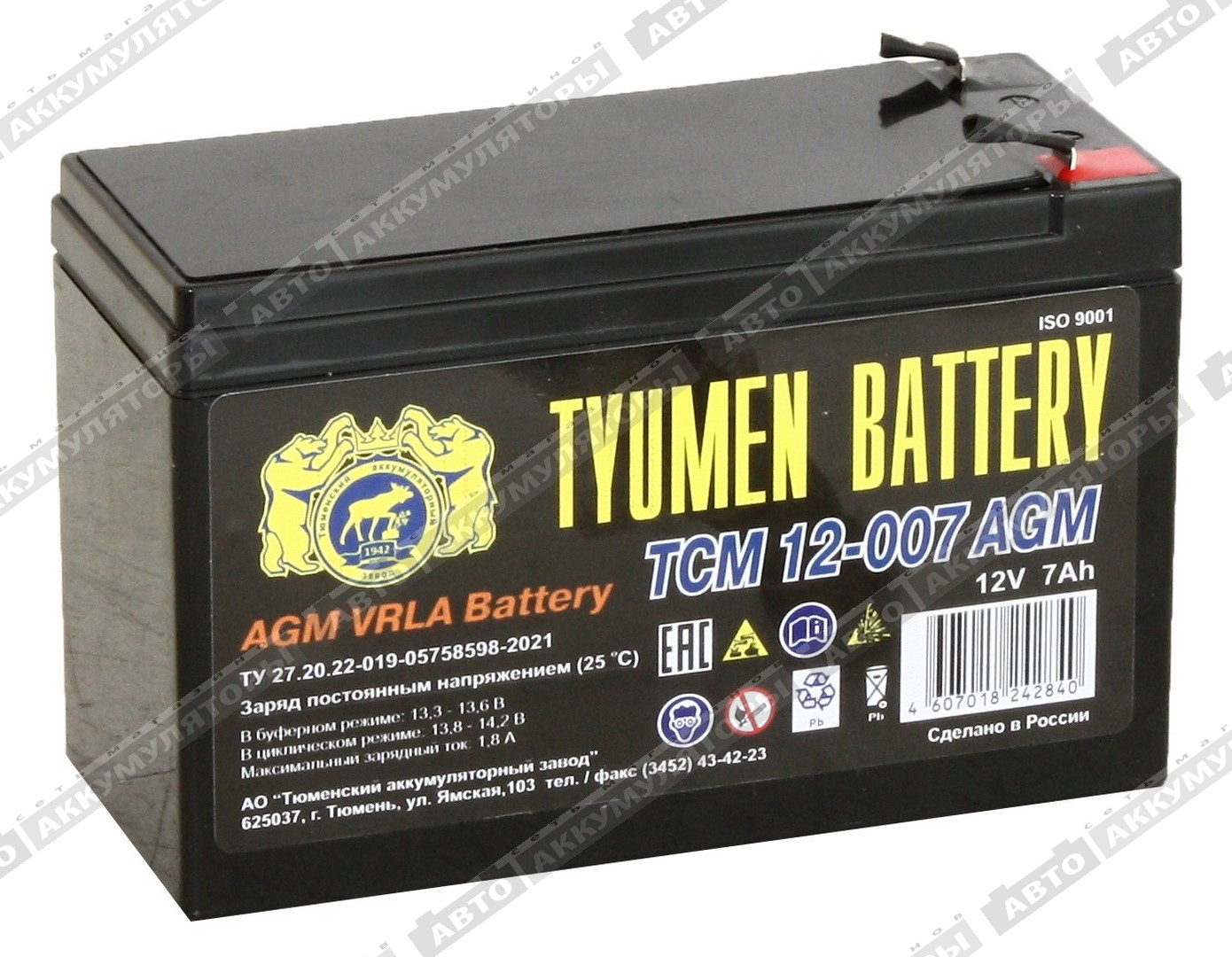Тяговый аккумулятор Тюмень ТСМ 12-007 AGM - надежный и высококачественный аккумулятор, предназначенный для использования в различных тяговых системах. Этот аккумулятор сочетает в себе высокую емкость - 7 Ач, и надежность в производстве, гарантируемую технологией AGM.