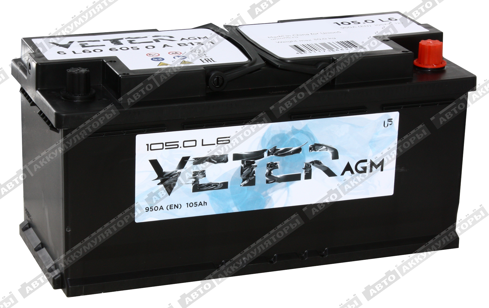 Грузовой аккумулятор Veter NEW 105.0 AGM