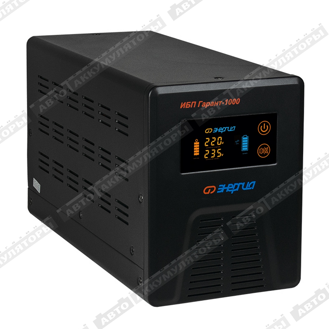 Энергия Гарант 1000— инверторные преобразователи постоянного напряжение в переменное со встроенным релейным однофазным стабилизатором напряжения — это устройства, способные обеспечить электроприборам не только стабильное напряжение, но и бесперебойное качественное электроснабжение потребителей даже в случаях полного отключения питания. Кроме этого Инверторы «Энергия» серии ИБП Гарант могут выполнять функцию зарядного устройства для аккумуляторов.