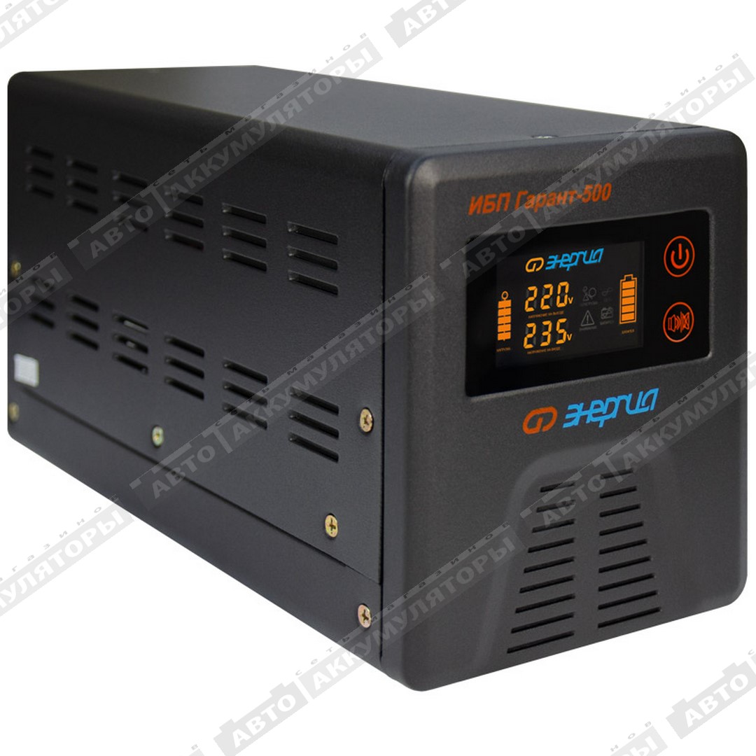 Энергия Гарант 500— инверторные преобразователи постоянного напряжение в переменное со встроенным релейным однофазным стабилизатором напряжения — это устройства, способные обеспечить электроприборам не только стабильное напряжение, но и бесперебойное качественное электроснабжение потребителей даже в случаях полного отключения питания. Кроме этого Инверторы «Энергия» серии ИБП Гарант могут выполнять функцию зарядного устройства для аккумуляторов.